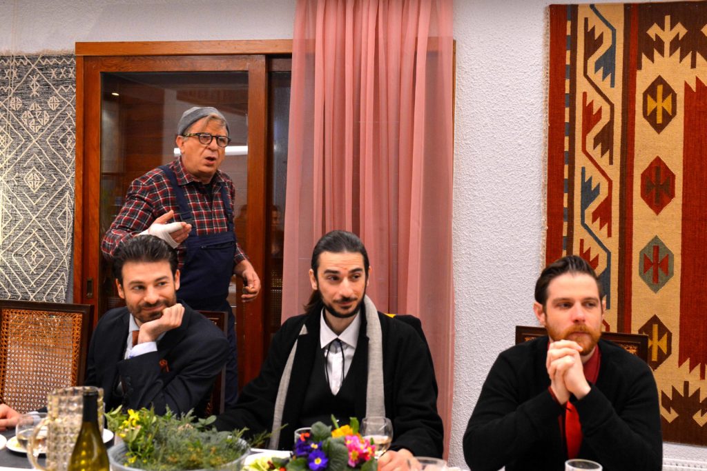 Τα σύννεφα της εκρηκτικής συνύπαρξης, χριστιανών, αλλόθρησκων, Ελλήνων, Γερμανών, Εβραίων, πλουσίων, φτωχών, ρατσιστών αντισυστημικών, γκέι, στρέιτ, φιλοβασιλικών, μαύρων έχουν αρχίσει να πυκνώνουν και οι πρώτες στάλες έχουν ποτίσει το τραπέζι με την ψαροφαγία. Η καταστροφή είναι προ των πυλών. Στο ήδη ηλεκτρισμένο «πεδίο μάχης» εισβάλλει με τη ζήλια του και ο Παναγιώτης, ο οποίος εκ παρεξηγήσεως «πιάνει στα πράσα» τον Πάρη με τον σκληροτράχηλο Γερμανό, εκτοξεύοντας απροειδοποίητα κι άλλο την ένταση, τη στιγμή μάλιστα που όλα είναι έτοιμα για την πρώτη πρόβα των σκηνών της ταινίας, που θα χρίσουν την Ευανθία πρωταγωνίστρια.